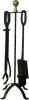 fireplace tools set Contents:poker,shovel,brush,tongs; Material:iron; Height:about 75cm.Surface treatment : polished brass ball & powder coated;